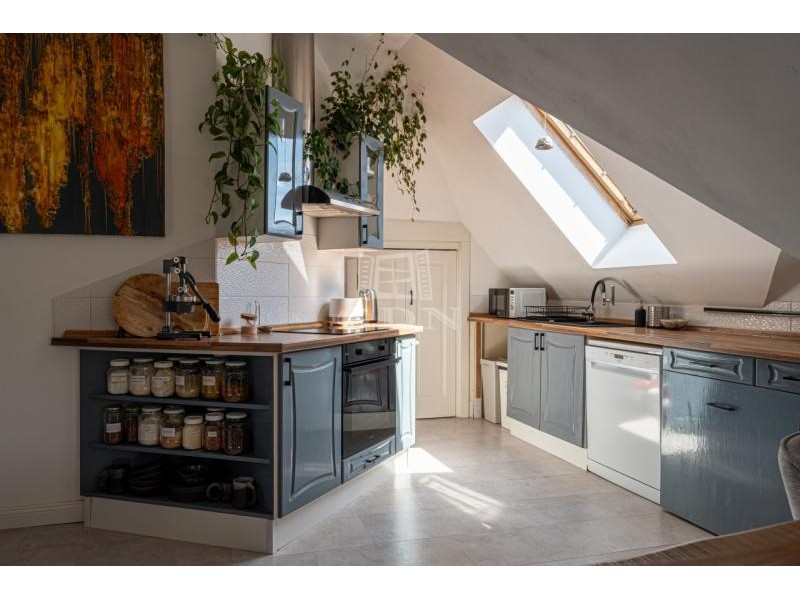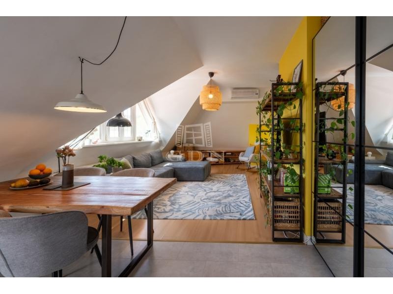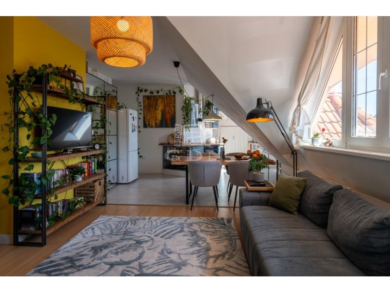 PANORÁMÁS tetőtéri, 74 nm-es lakás amerikai konyhás nappalival és 2 hálószobával (egyik szoba jelenleg 2 kisebbé alakítva).