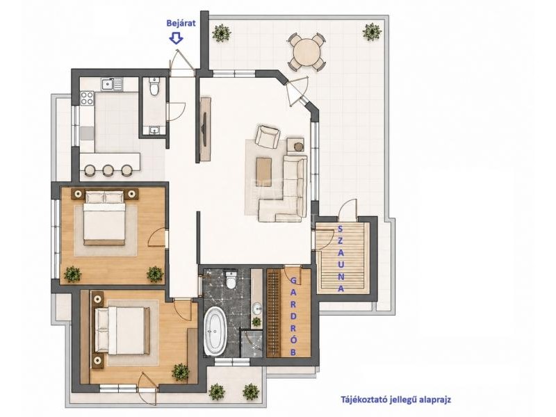 - saját, nagy méretű szauna, amely a lakásból és a teraszról is elérhető