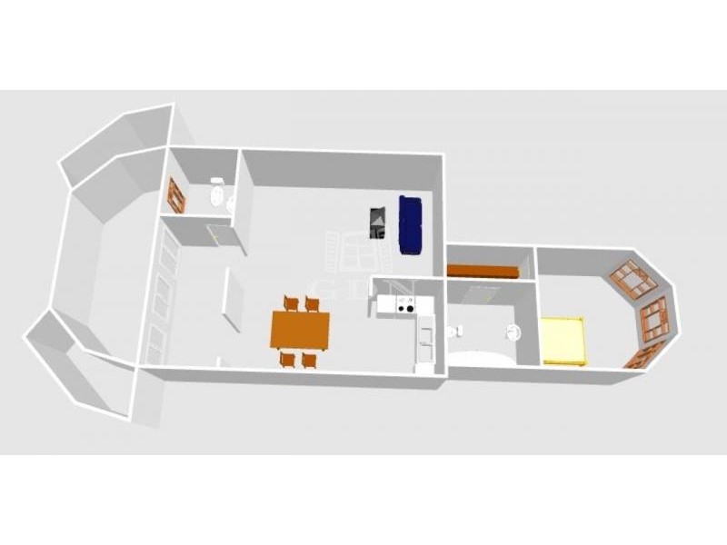 A lakás bútorozott, gépesített konyhával és mosógéppel felszerelve.