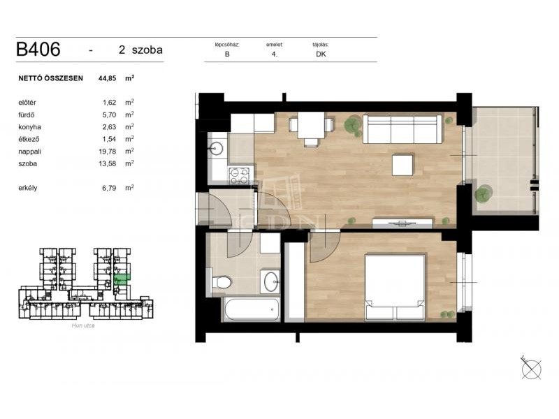 Minőségi, új építésű lakás, októberi átadással! Budapest XIII. kerületében a Hun utcában, új építésű társasházban eladásra kínálok negyedik emeleti, 45 nm-es lakást, 7 nm-es erkéllyel. A lakáshoz teremgarázs hely vásárolható 6.99MFt-ért. A kivitelező több mint 15 éve jelen van a piacon, és több mint 2.500 lakás kivitelezésében vett részt. Kiváló közlekedéssel, a belvárostól mindössze öt percre található. Bevásárlási és rekreációs lehetőségek a közelben Kiváló tömegközlekedés Gazdaságos, fenntartható otthonok Legmodernebb hőszivattyús mennyezeti hűtés fűtés, alacsony rezsi! Egyedülálló belső zöld környezet Világos életterek Hangulatos belső tér A Róbert Károly körút melletti beruházással elegáns, élhető otthonokat terveztek, fiataloknak, időseknek valamint akiknek fontos a városias de mégis zöld környezet. Részletekért, további információkért várom megtisztelő hívását! B406