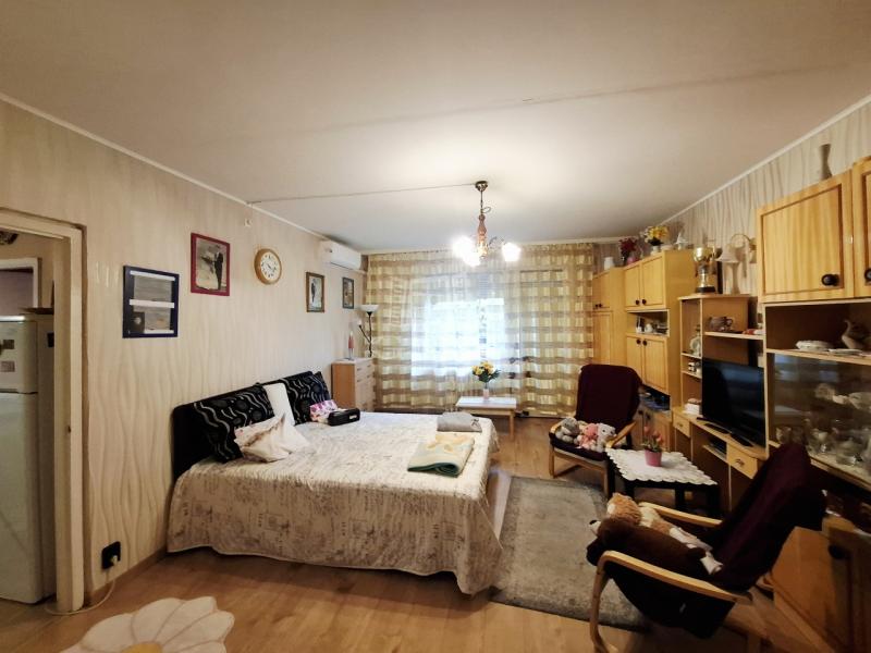 Erkélyes, 1+2 félszobás lakás eladó – Szegedi úti lakótelepen! Szegedi–Országbíró úti lakótelepen, 1981-ben épült, 10 emeletes, panelépületben, eladó egy 2. emeleti, 58 m²-es, 1+2 félszobás, erkélyes, ablakos konyhás, közepes állapotú, tehermentes lakás. Főbb jellemzők: 58 m², praktikus elosztású lakás 1+2 félszoba, erkély Ablakos konyha Közepes állapotú, azonnal birtokba vehető Minden ablak redőnnyel szerelt Klíma a nappaliban – az ár részét képezi Tehermentes ingatlan A házról: Rendezett, jó anyagi helyzetű társasház Új lift Kulturált lakóközösség Elhelyezkedés: Kiváló infrastruktúra – a közelben iskola, óvoda, üzletek, bevásárlási lehetőségek mindössze 2 perc sétára. Tömegközlekedéssel a belváros is gyorsan elérhető. J.Sz.