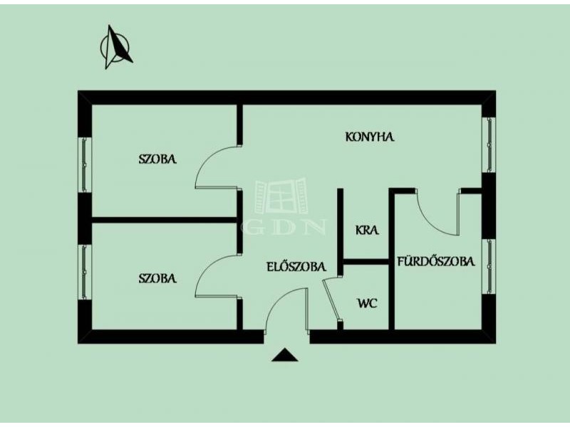 • Elosztás: 2 szoba, konyha, fürdőszoba, WC, folyosó