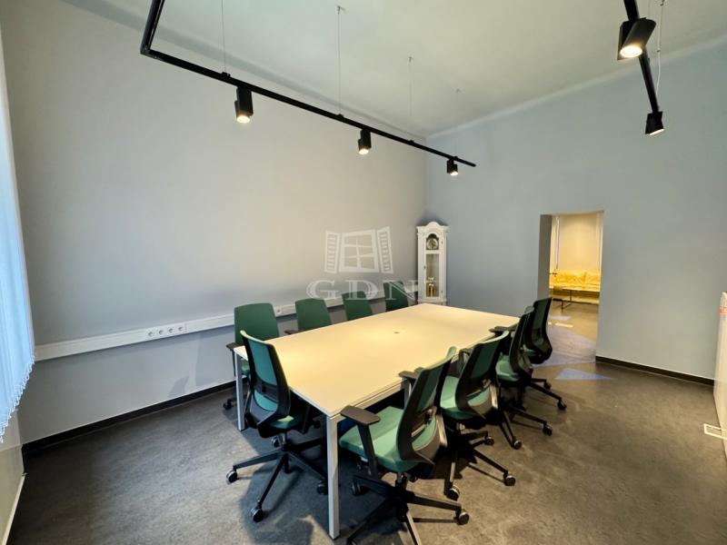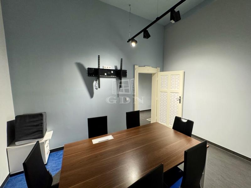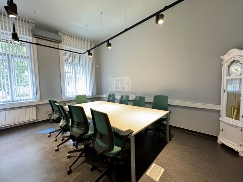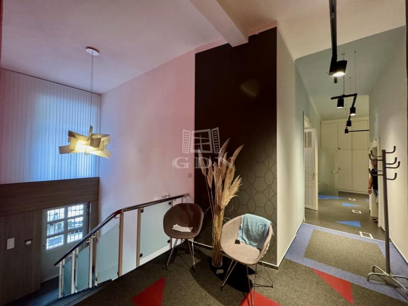 Az emeleti szint jelenleg megosztott kettő irodával, melyből a 100m2-es rész képezi a bérlemény tárgyát.