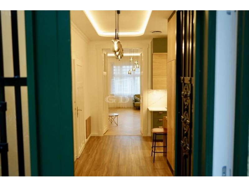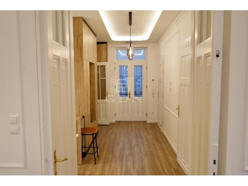 Eladó PANORÁMÁS, felújított, 107 négyzetméteres téglaépítésű lakást a közkedvelt Jászai Mari téren. A lakás a patinás Palatinus házak egyikében a 4.emeletén helyezkedik el, ahonnan lenyűgöző panorámás kilátás tárul a Dunára, a Parlamentre és a gyönyörű budai oldalra. Elrendezés: -Nappali -Háószoba -Gardrób -2 fürdőszoba -Szauna -Konyha -Előszoba -2 félszoba -gépészeti helyiség Az inagtalan két fürdőszobával rendelkezik: a fő hálószobához kapcsolódó kádas fürdőben egy szauna is helyet kapott. A másik fürdőszoba zuhanyzós, mindkettő fürdőszobában WC is van. A déli tájolásnak köszönhetően a lakás rendkívül világos. A modern hőszivattyús fűtési rendszer padlófűtéssel gondoskodik a kellemes belső hőmérsékletről minden évszakban. A lakás teljeskörűen felújított, a felújítás óta még senki nem lakta, így Ön lehet az első lakója. A 3,2 méteres belmagasság, a klasszikus halszálkamintás tölgyfa parketta és a felújított, patinás beltéri ajtók időtálló nagypolgári hangulatot teremtenek, amely harmonikusan kapcsolódik a modern megoldásokhoz. Az enteriőr kifinomultságát designlámpák és gondosan kiválasztott burkolatok erősítik, egységes és elegáns összképet alkotva. A fő hálószobához külön gardróbrész kapcsolódik, amely kényelmes és bőséges tárolási lehetőséget biztosít. A lakás egészében egyedileg tervezett, prémium minőségű beépített bútorok szolgálják a funkcionalitást és az esztétikumot. A felújítás során teljes körű műszaki korszerűsítés valósult meg. Új, háromrétegű műanyag nyílászárók kerültek beépítésre, automata redőnyökkel ellátva. A fűtést energiatakarékos hőszivattyú biztosítja, míg a kellemes hőmérsékletről két klímaberendezés gondoskodik. A közös költség 46.000 Ft, amely jelenleg a korlátlan vízfogyasztást is magában foglalja (önálló vízóra kialakítása folyamatban). **A társasház** Az ingatlan a patinás Palatinus-házak egyikében helyezkedik el, melyeket 1910-ben emeltek. Az épület szecessziós díszítőelemei, saroktornyai, igényesen kidolgozott kovácsoltvas korlátai, belső burkolatai és körfolyosói kiemelkedő építészeti értéket képviselnek. A társasház lifttel felszerelt, rendezett állapotú, folyamatosan karbantartott. **Lokáció** Újlipótváros Budapest egyik legkedveltebb és legélhetőbb városrésze. A Duna-part, a Szent István park, a Margitsziget és a Vígszínház mindössze néhány perc sétával elérhető. A környék pezsgő városi életet kínál számos kávézóval, étteremmel, galériával és üzlettel. Az épület földszintjén szupermarket és gyógyszertár működik, a közvetlen közelben pedig igényes reggelizőhelyek, cukrászdák és specialty kávézók találhatók. **Közlekedés** A közlekedési adottságok kiválóak: a 4–6-os és a 2-es villamos, valamint több buszjárat is néhány lépésre megáll, így Budapest bármely pontja gyorsan és kényelmesen elérhető. ÁR: 359M FT