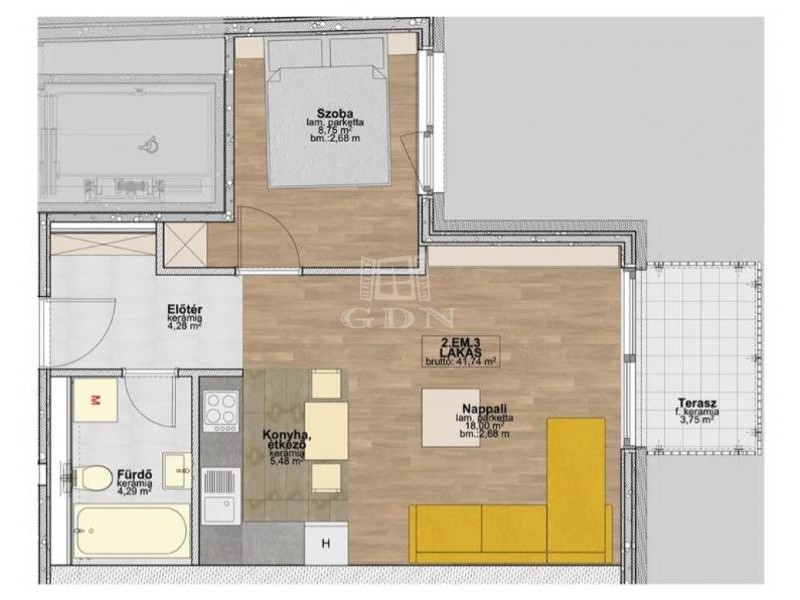 2. emelet – 41 m2 - 2 szoba – 4 m2 erkély – ELÉRHETŐ
