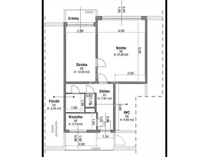 Üde színfoltja az ingatlannak a 3 négyzetméteres erkély, ahonnan az utcai kilátás tárul részünkre.