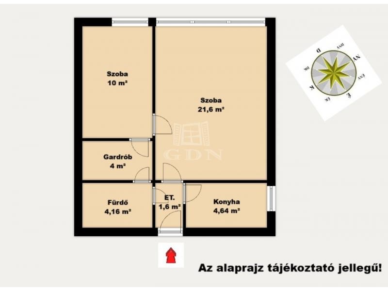 - Előszoba: 1,6 m2