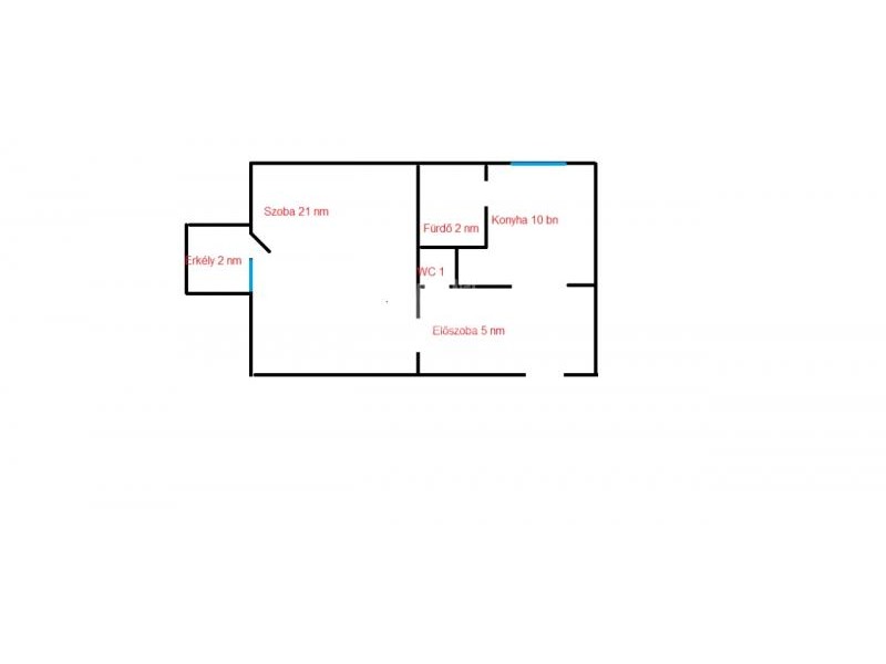 Az előszobából nyílik a 21 nm-es, szoba amelyhez tartozik a 2 nm-es erkély.