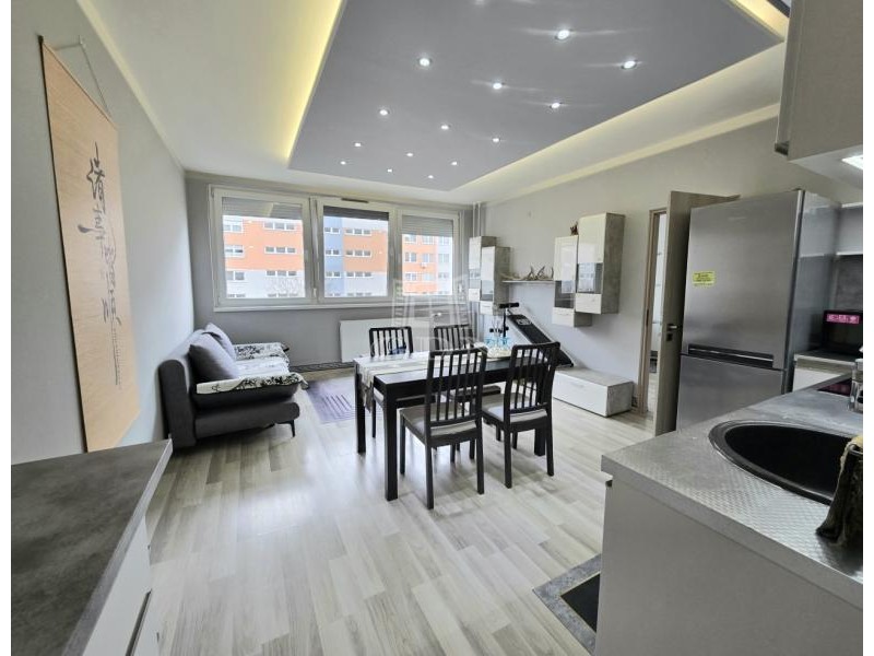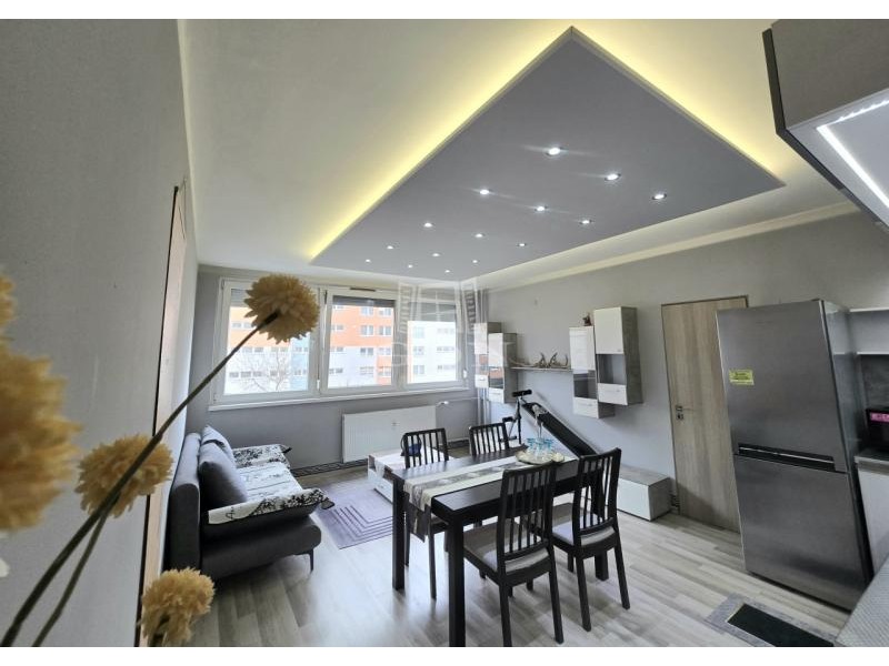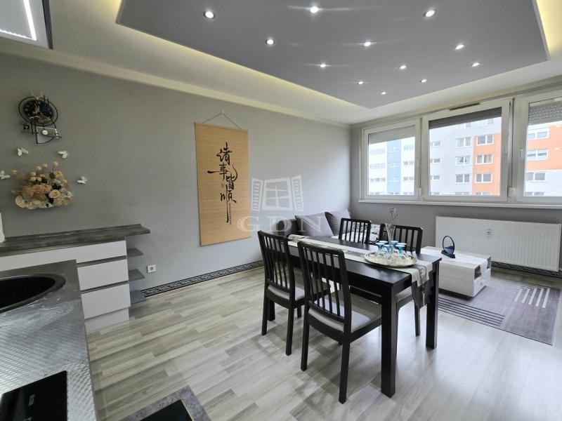 XIV. kerületben, a Füredi lakótelepen eladó egy 70 m2-es, beépített LOGGIÁS (2 m2), 3 szobás+…1 félszobás, CSENDES, VILÁGOS, FELÚJÍTOTT, panorámás lakás. Tulajdoni lapon 3 szobás, de a konyha bekerült a nappaliba és így egy fél szobával bővült a lakás.
