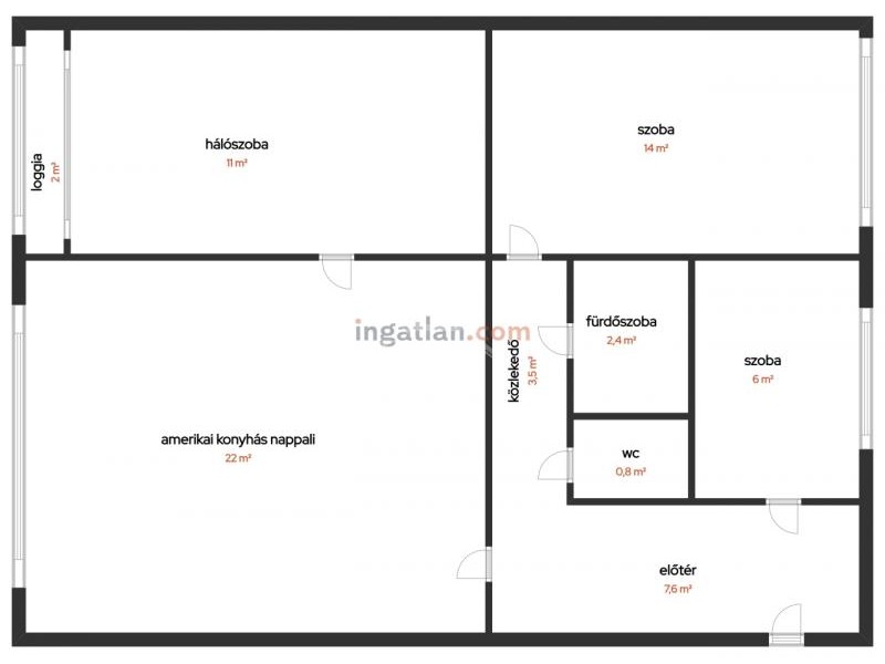 - beépített loggiás (2 m2)
