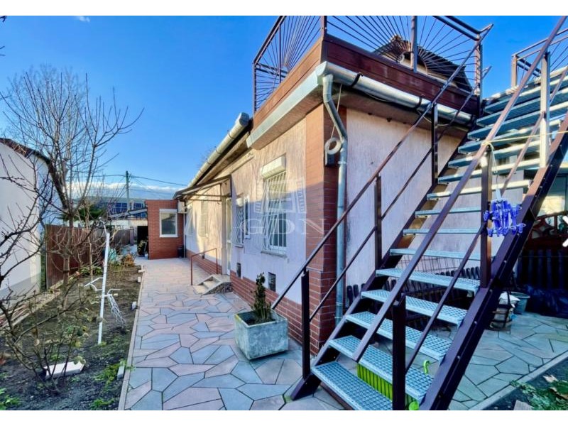 XIV. kerületben, Alsórákos családi házas övezetében eladó egy 354 m2-es telken elhelyezkedő bruttó 154, nettó 113 m2-es, 1960-as években épült két generációs, CSENDES, VILÁGOS tégla építésű ikerház-fél, mely saját részre és befektetésre is kiválóan alkalmas. A ház jelenleg két részre van osztva, melyből: I. Házrész 70,78 m2: - Utcafronti - Megújuló energiás - Napelemes - Teljesen felújított - Gépesített konyhabútor - Beépített szekrények - Szauna - Padlófűtés és radiátor - Zuhanyzós fürdő - Délnyugati fekvésű - Műanyag nyílászárók - Redőnyös ablakok II. Házrész 45,88 m2: - Megújuló energia bevezetéséhez kiállások - Jelenleg gázfűtéses - közepes állapotú - 1 szoba - Nagy előtér - Külön konyha - Külön fürdő - Délnyugati fekvésű - Műanyag nyílászárók - Redőnyös ablakok - Jelenleg bérbe adva Mindkét lakrészhez tartozik: - Udvar - Udvari, zárt tárolók 37 m2 - Tetőterasz 11 m2 A két lakrész akár egybe is nyitható, közös fallal rendelkezik; akár külön is használható, mint jelen esetben is. Közelben: bevásárlási lehetőségek, óvoda, iskola, bankok, posta, gyógyszertár stb. Közlekedés: kiváló (5-ös busz, 80-as troli, 62, 62A, 69-es villamosok, 974-es éjszakai járat).