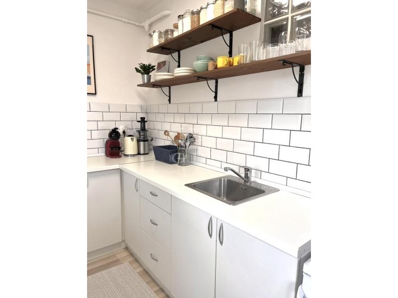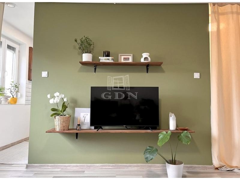 A lakás magasföldszinten található. Világos, egy szobás, tágas konyhával és fürdőszobával rendelkezik. Pár éve fel lett újítva, műanyag nyílászárókkal és TerraSec biztonsági ajtóval lett felszerelve.