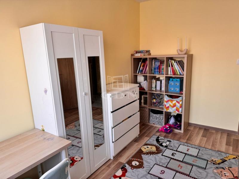 A szobák parkettával burkoltak, míg a konyha, fürdőszoba, WC és közlekedő egységes, esztétikus kőburkolatot kapott. A beépített konyhabútor a vételár részét képezi.