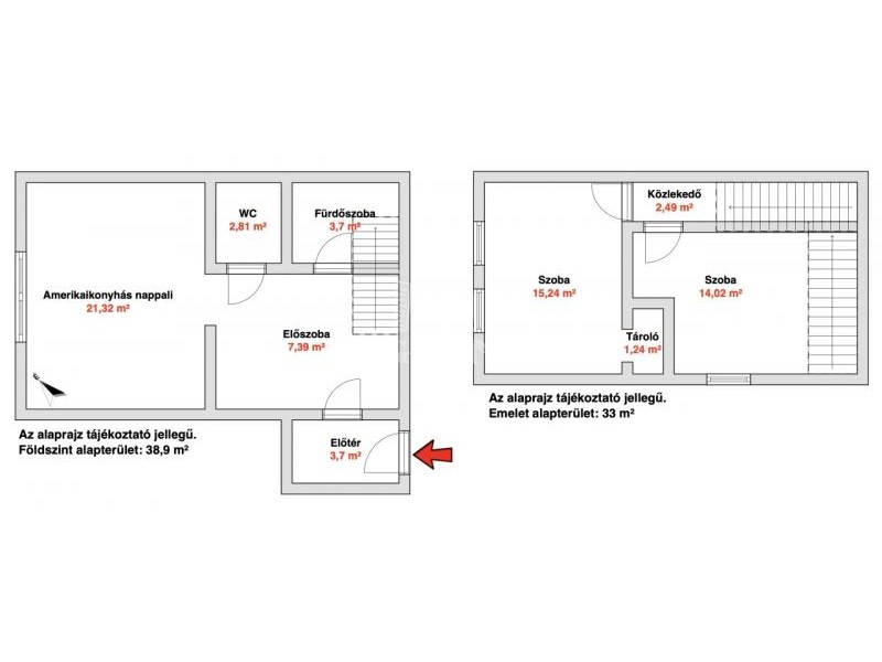 A lakás alsó szintjén amerikai konyhás nappali, valamint külön fürdőszoba és WC található, az emeleten pedig 2 tágas szoba került kialakításra.