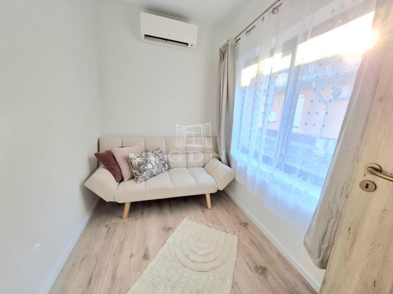 A 42 négyzetméteres, földszinti ingatlan 1+1 félszobából áll, ideális választás lehet kisebb családok számára vagy befektetési célból.