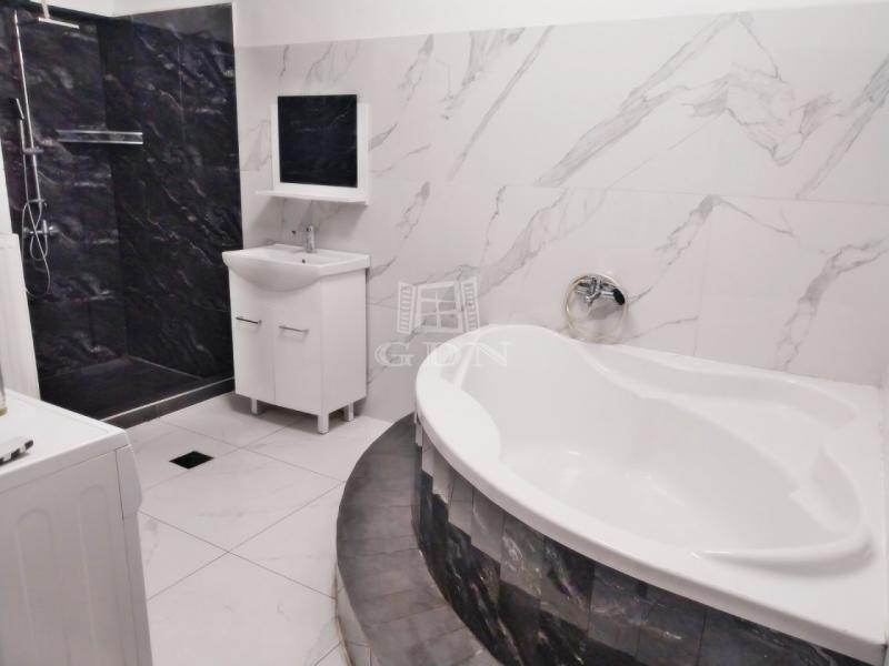A XV. kerület csendes, kertvárosi részén eladó egy 44 nm-es házrész, amely egy használati megosztási szerződés alapján jogilag leválasztott, három külön bejáratú lakásból álló épület része. A lakás 2021-ben került kialakításra utólagos hozzáépítéssel, szerkezete phorotherm tégla 10 cm-es EPS szigeteléssel, vasbeton födémmel, esztétikailag és gépészetileg is új kivitelezéssel. Alapterülete 44 nm, jelenleg 1 nagy szobás, amerikai konyhás elosztású, de könnyedén 1,5-2 szobássá alakítható több féle alaprajzi lehetőséggel. Kényelmes méretű fürdőszobája nagy sarokkádal és épített zuhanyzóval is rendelkezik emelve a komfort érzetet. A lakáshoz tartozik egy 18 nm fedett terasz, illetve egy 200 nm kizárólagos használatú rendezett kert rész. A lakás fűtését jelenleg a közös gázkazán látja el, de az új kivitelezés alapján a fűtést inverteres hűtő-fűtő klíma, meleg víz ellátását villanyboiler fogja ellátni. A lakás ideális választás egyedül állóknak, fiatal pároknak, időseknek egyaránt. Az épületben szintén eladó egy 28 nm-es 1 szobás lakás, 40 nm-es saját kert résszel. Ára: 32.200.000 ft Hitelre vásárló ügyfeleinknek teljeskörű, ingyenes, bank semleges ügyintézéssel állunk rendelkezésére. Irodánk ügyvédje pedig kedvező díjszabással vállalja az adásvételi szerződés elkészítését. Amennyiben még el kell adnia ingatlanát, kérem, tiszteljen meg bizalmával és kérje, nagy tapasztalattal rendelkező, az aktuális árakkal tisztában lévő, irodánk ajánlatát. P.B.