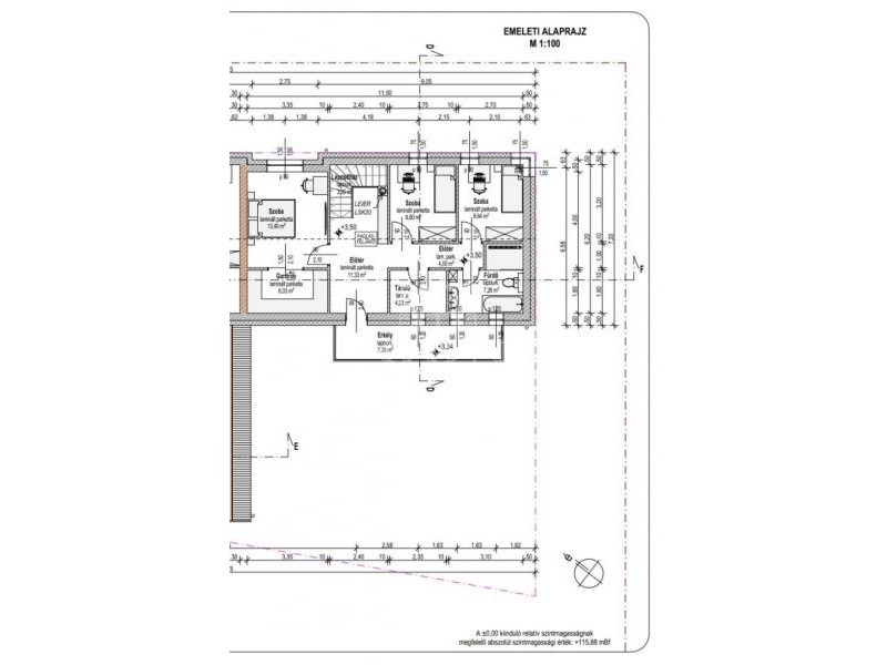 – emeleten három szoba, fürdőszoba és lépcsőház