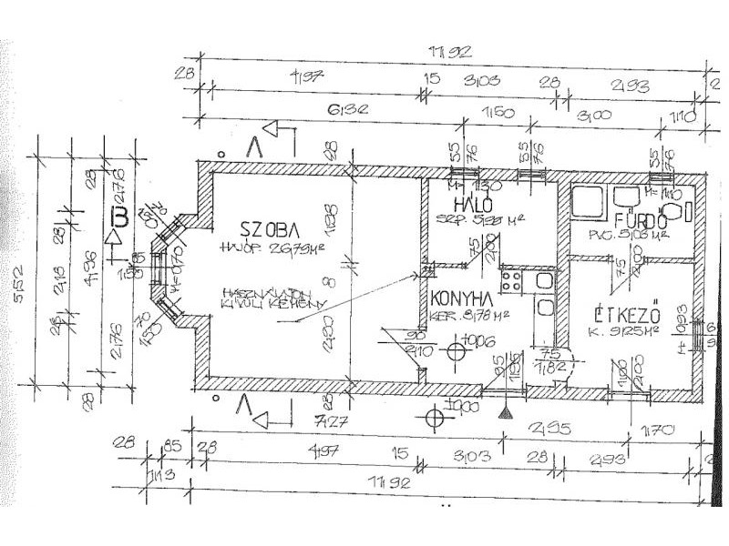 A telken található egy 20 éve megkezdett építkezés, amelyhez eredetileg: