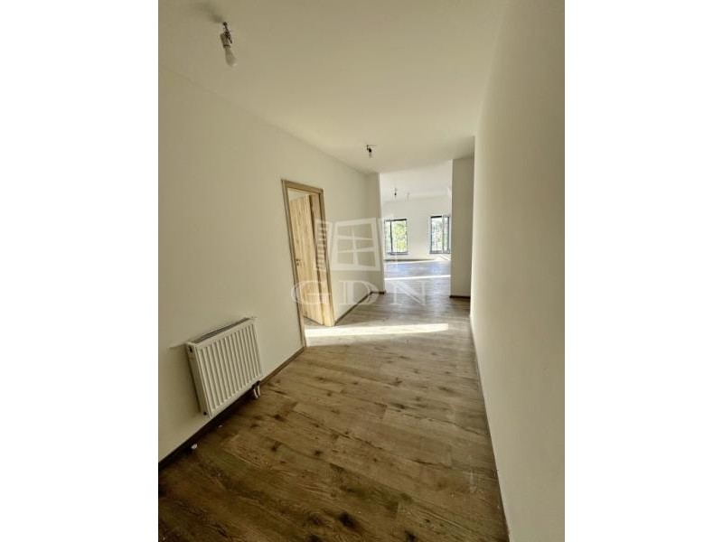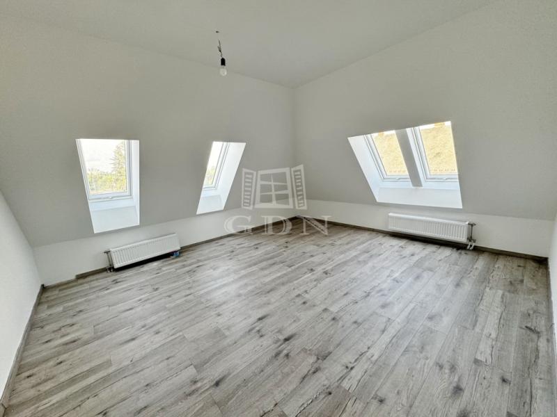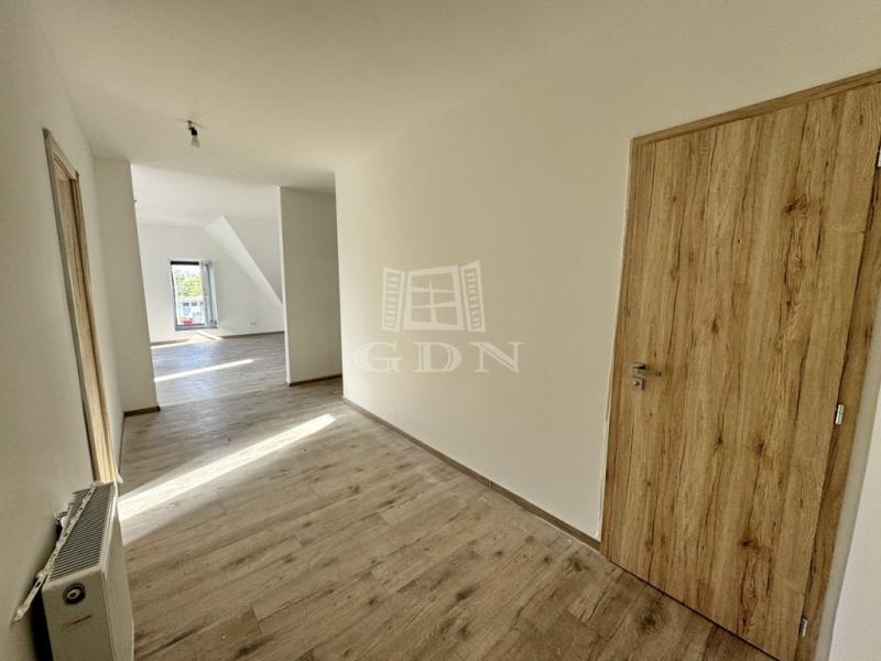 A 120 nm-es lakás egy újépítésű, háromszintes társasház 2. emeletén található, és új lakóját várja. Belépve tágas előtér fogad, innen nyílik a külön WC és az egyik hálószoba, szemben pedig a világos, amerikai konyhás nappali. A közlekedőből jobbra haladva érjük el a fürdőszobát és a további két hálószobát. A fürdőt járólap, a többi helyiséget parketta borítja.