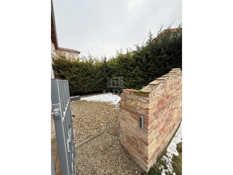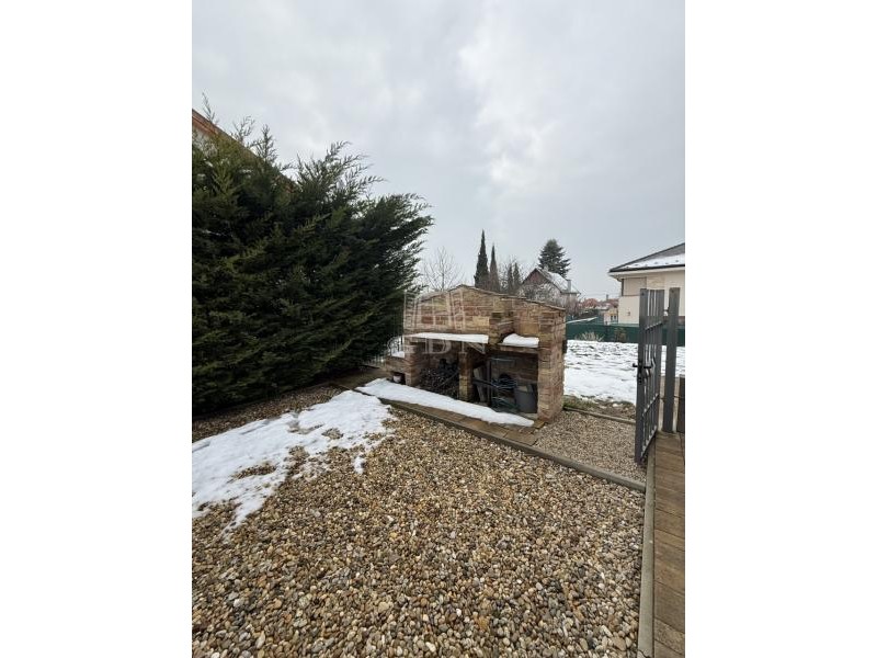 A szépen gondozott udvaron egy külön elkerített, hangulatos kerti sütögető rész került kialakításra – tökéletes helyszín családi és baráti összejövetelekhez.