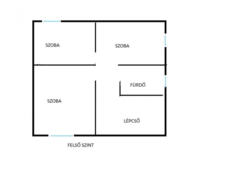 Emelet: 3 különnyíló hálószoba és egy második fürdőszoba.