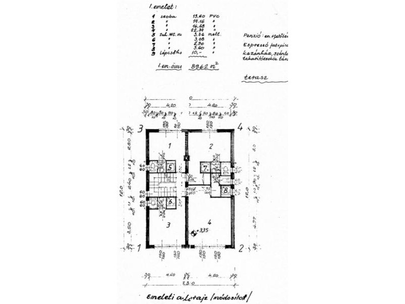 Méretezett helyiségeit lásd az alaprajzon.