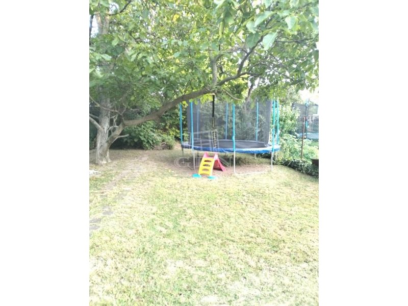 Tágas kert: örökzöldek, diófa és rózsabokrok biztosítják a nyári árnyékot és a privát pihenést!
