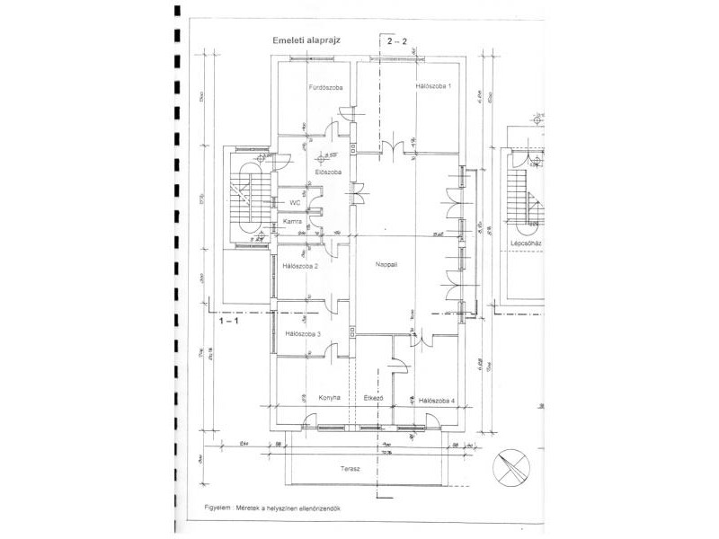 előszoba, közlekedő, nappali(66m2) konyha+étkező(24m2), 4 szoba(12m2, 12m2, 24m2, 16m2), fürdőszoba+Wc, Wc, gardrób(4m2), terasz(27m2).