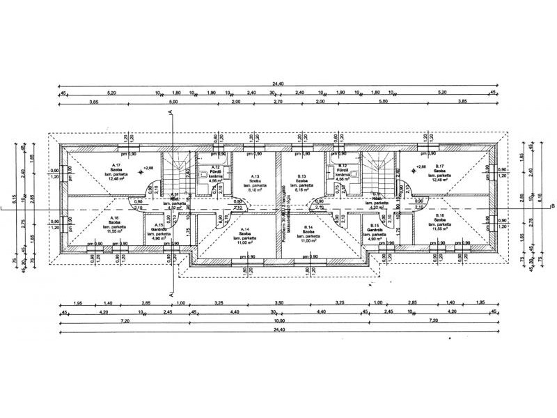 12,48 m2, 8,16 m2, 11 m2) plusz gardrób szoba 4,9 m2.