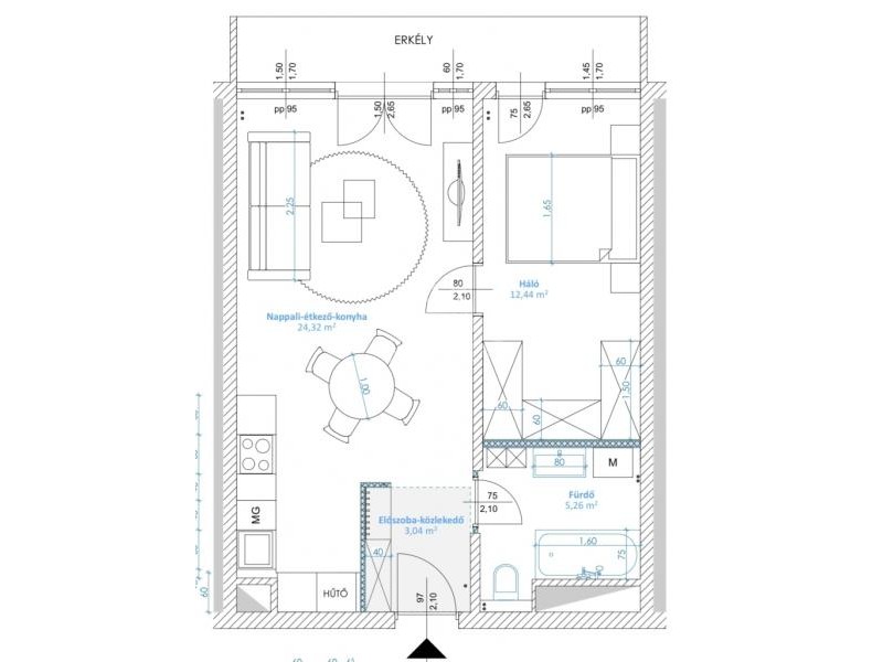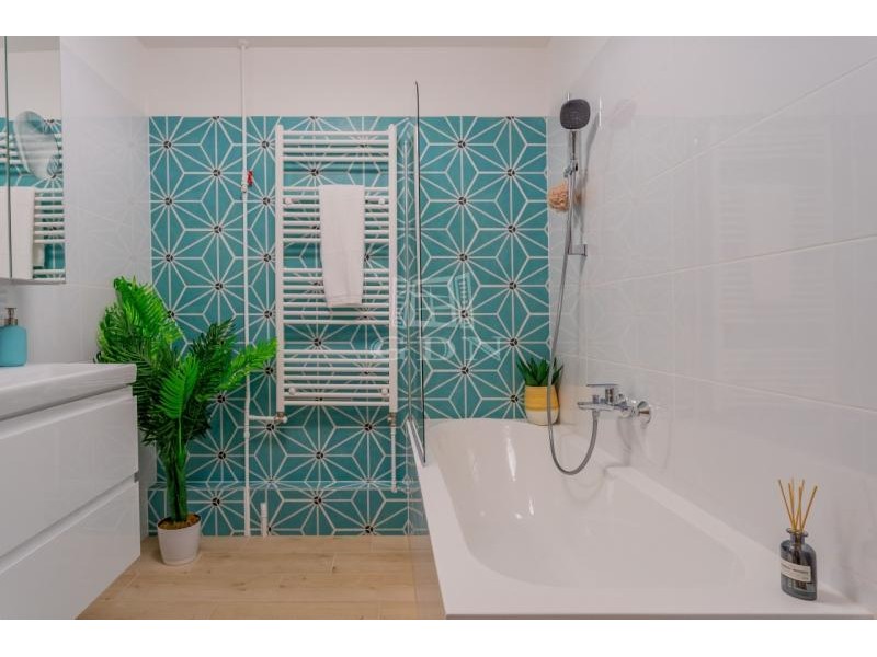Az átgondolt alaprajzi módosításnak köszönhetően a terek jól kihasználtak és élhetőek. A keleti tájolásnak és a sok ablaknak köszönhetően a lakás rendkívül világos, ugyanakkor csendes. Az erkélyről szép, nyitott panoráma tárul elénk.
