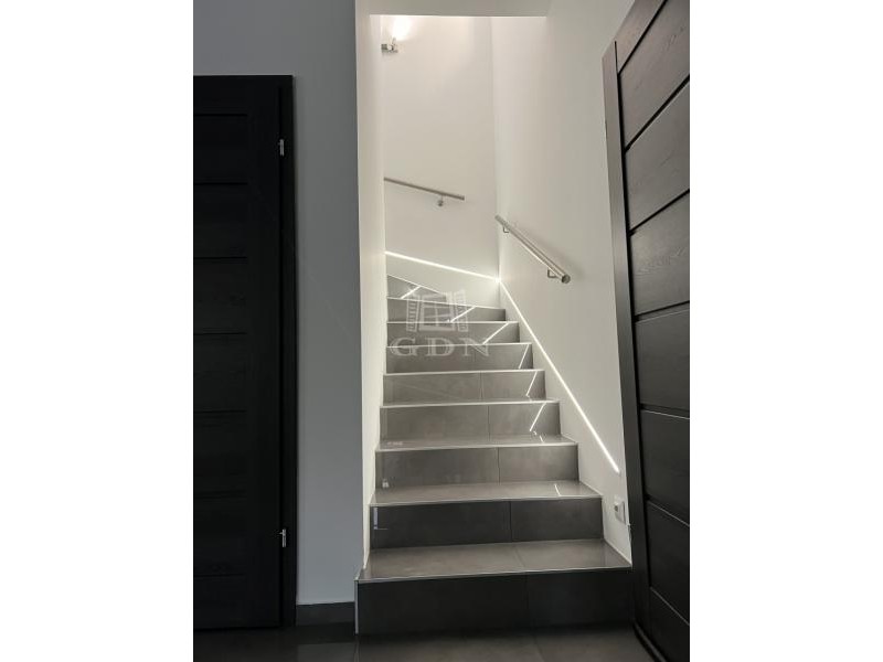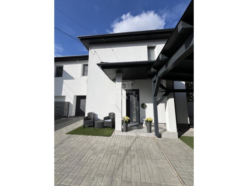Az épület elrendezése átgondolt és élhető, a földszinten csak a garázsnál érintkezik a szomszéddal, az emeleten pedig mindössze két hálószobánál van a kapcsolódási pont.