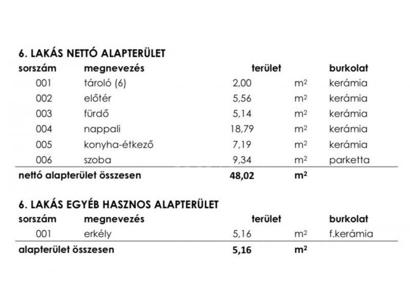 6. lakás 48 nm, Emeleti,