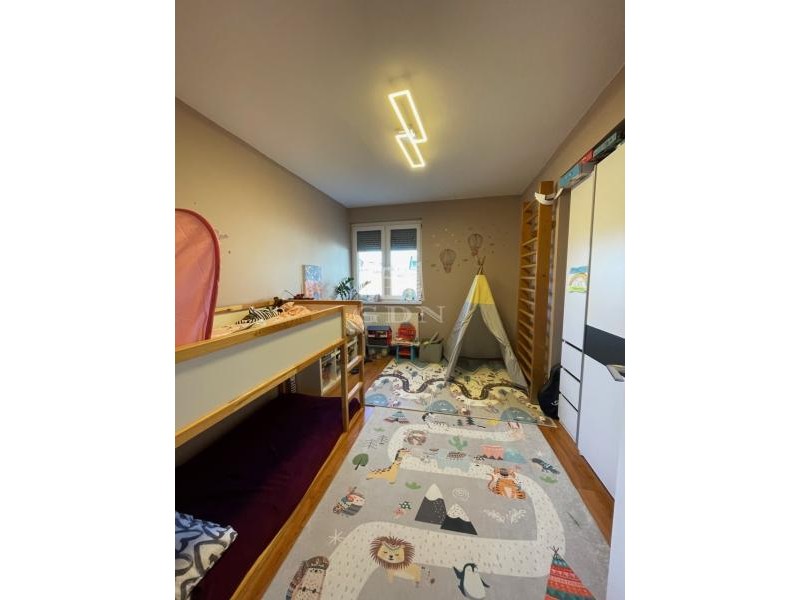 Az amerikai konyhás nappaliból nyilik a hálószoba, illetve innen jutunk ki az udvar felé néző nagy erkélyre is. A gyerekszoba is tágas, jól rendezhető.A fürdő és a wc külön helyiségben található, és az ingatlanban helyet kapott egy spájz is.