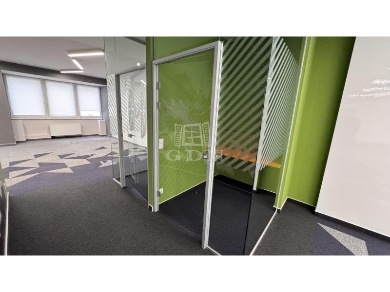 - több, különböző méretű üvegfalú zárt iroda / tárgyaló