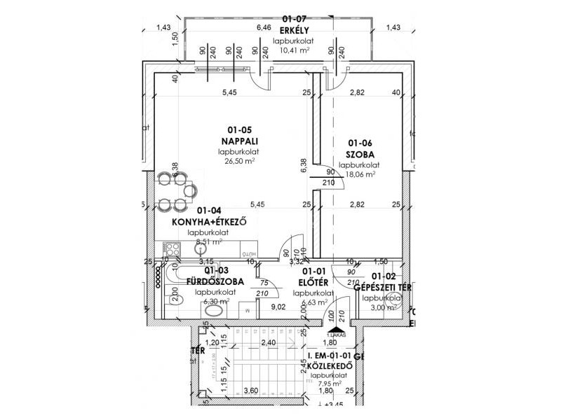 A nappaliból és a hálószobából is közvetlen kijárat nyílik az erkélyre.