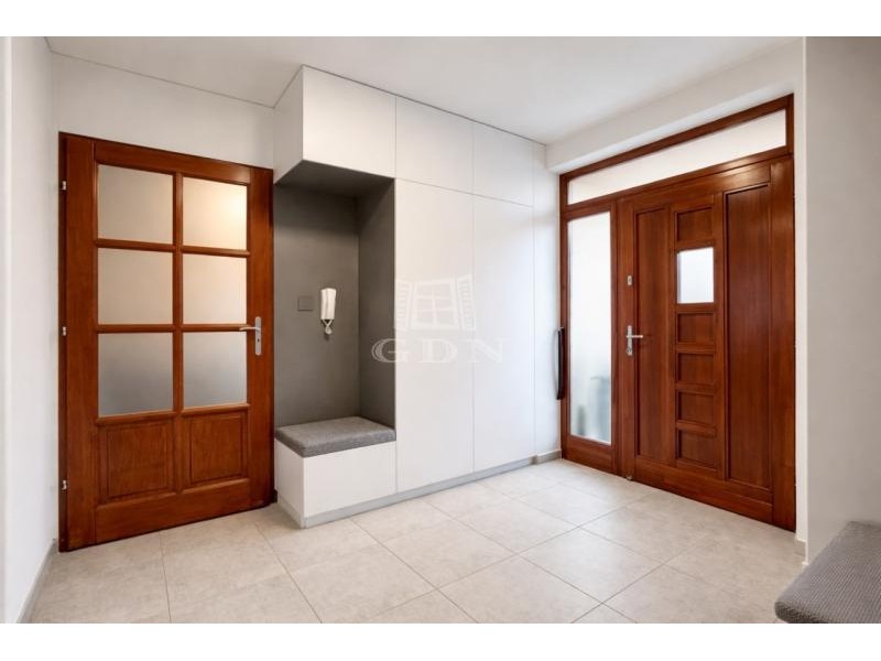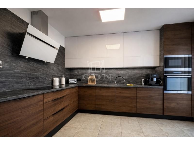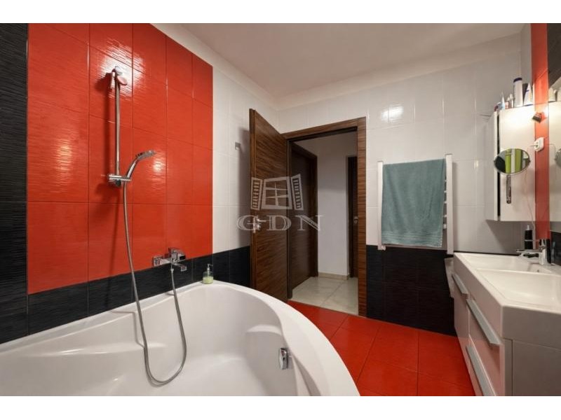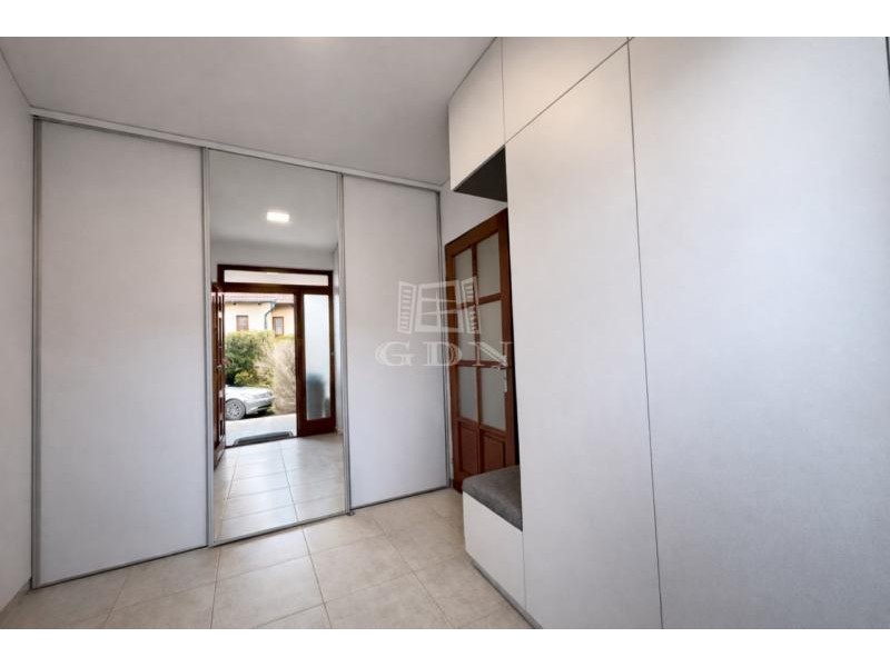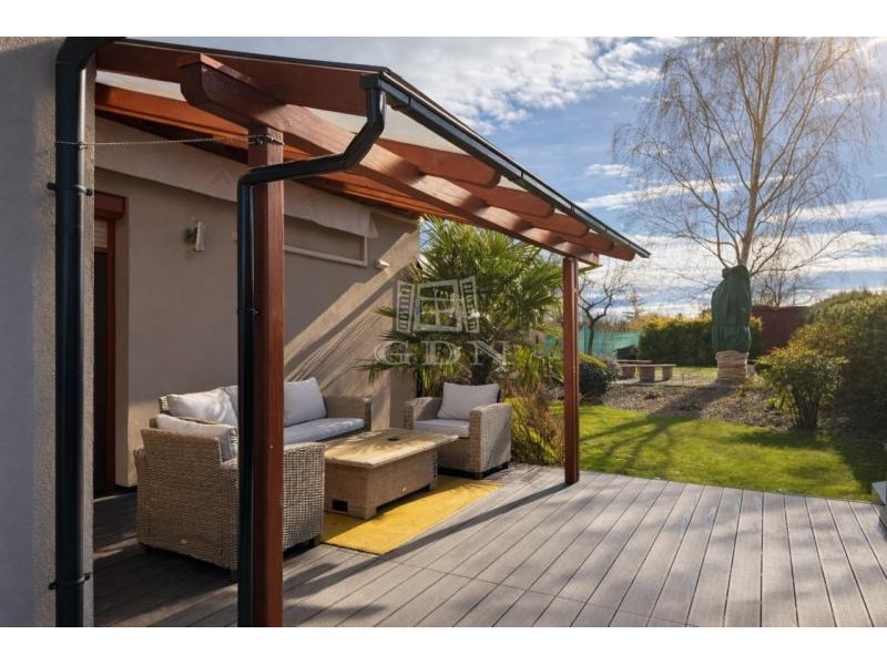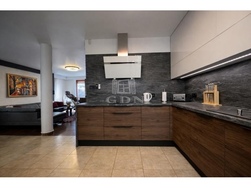 Vh-00 Úrhidán, az Arany János utcában, lakóparki környezetben eladó egy újszerű állapotú, nappali + 3 hálószobás, összesen 144 m² -es lakóingatlan, amely 860 m² nagyságú,- önálló használatú telekrésszel, kétállásos gépkocsitárolóval, napelemes rendszerrel, valamint magas felszereltséggel rendelkezik. Az ingatlan 2008-ban épült, a mai kornak is megfelelő műszaki megoldásokkal. A homlokzati és teherhordó falazatok 38 cm vastagságú Leier falazóelemekből készültek, 5 cm vastag Terranova hőszigetelő rendszerrel ellátva. A belső válaszfalak 10 cm vastagságú Leier falazóelemekből épültek. A födémszerkezet fa gerendás kialakítású, 20 cm vastag Isover ásványgyapot hőszigeteléssel. A tetőszerkezet fa ácsszerkezetű, fedése Tondach cserép. A nyílászárók kétrétegű hőszigetelő üvegezésű szerkezetek, redőnnyel és szúnyoghálóval felszerelve. A fűtési és használati melegvíz-ellátási rendszer hőtermelője egy 24 kW teljesítményű (turbó), kombi gázkazán. A hőleadás padlófűtéses rendszerrel történik, a hálószobákban pedig radiátorokkal. A nappaliban, valamint mindhárom hálószobában önálló hűtő-fűtő, split klímaberendezés került telepítésre. Az ingatlanon 5 kW teljesítményű napelemes rendszer működik, amely 5 évvel ezelőtt került üzembe helyezésre. Az elektromos hálózat 3×20 A kapacitású. Vízlágyító berendezés telepítéséhez szükséges gépészeti előkészítés rendelkezésre áll. A belső terek tágasak és világosak, fa díszítőelemekkel, egyedi tervezésű bútorokkal és hangulatvilágítással, amelyek igényes, esztétikus összhatást teremtenek. Elosztását tekintve az ingatlan 99 m² hasznos alapterülettel rendelkezik. Helyiséglista: • Előszoba: 8,3 m² • Nappali: 23 m² • Étkező: 7 m² • Kamra: 1,7 m² • Konyha: 11,7 m² • Hálószoba: 10,5 m² • Hálószoba: 10 m² • Hálószoba: 11 m² • Fürdőszoba: 5,3 m² • Háztartási helyiség: 3,5 m² • WC: 2,5 m² • Közlekedő: 4,2 m² A lakóépülethez közvetlenül kapcsolódik egy 36 m² alapterületű, fűtött, kétállásos gépkocsitároló, amely az előszobából megközelíthető. Valamennyi helyiség közvetlen teraszkapcsolattal rendelkezik. Az épület mentén közel teljes hosszban burkolt teraszfelület található, összesen megközelítőleg 60 m² alapterülettel. A hátsó telekrészen jakuzzi elhelyezésére alkalmas közműkiállások kerültek kialakításra. A telek 860 m² nagyságú, parkosított, rendezett és teljes mértékben elkülönített használatú. A kert öntözését ásott kút, valamint almérős locsolórendszer biztosítja. A garázs előtti terület térburkolattal ellátott, amely több gépjármű parkolására alkalmas. A lakópark mintegy 3.500 m² alapterületű, összesen 4 lakóegységből áll, páros elrendezésben. Az egyes ingatlanok kizárólag a gépkocsitárolók falszerkezetén keresztül érintkeznek, a lakófunkciójú szerkezetek között közvetlen kapcsolat nincs. Eladási irányár: 92.000.000 Ft (per-, teher- és igénymentes tulajdon) Ha felkeltette érdeklődését, hívja irodánkat bizalommal, éljen ingyenes, személyre szabott hitelügyintézés szolgáltatásunkkal. Segítünk továbbá adásvételhez szükséges ügyvédi közreműködésben, energetikai tanúsítvány, valamint értékbecslés elkészítésében. For English details please send us a message or an e-mail, thank you!