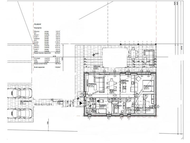 A 2025-ben épült ingatlan 93 négyzetméter hasznos alapterülettel rendelkezik, mely ideális elrendezést biztosít: egy körbe napozott amerikai konyha-nappali mellett két tágas hálószoba, két különálló fürdőszoba, előszoba és háztartási helyiség került kialakításra. A belső tér rugalmasan alakítható, így igény szerint akár nappali + 3 szobás elrendezés is megvalósítható. Az életteret jelentősen kiterjeszti a házhoz kapcsolódó 79 négyzetméteres terasz.