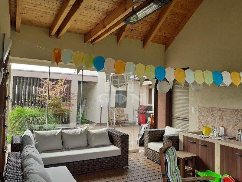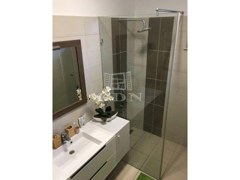 A 25 nm-es fedett, fűthető terasz eltolható üvegfelületekkel megnyitható a kert felé, de ezen kívül egy 22 nm-es nyitott terasz is rendelkezésünkre áll, amin egy elektromos napellenző gondoskodik az árnyékról.