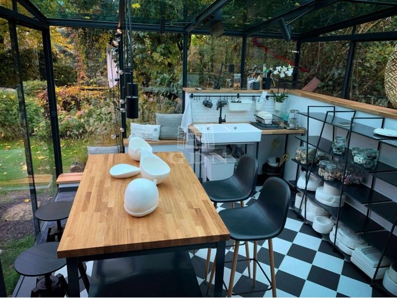 Az egyedi tervezésű, teljes üvegfelületű kisház külön történet.