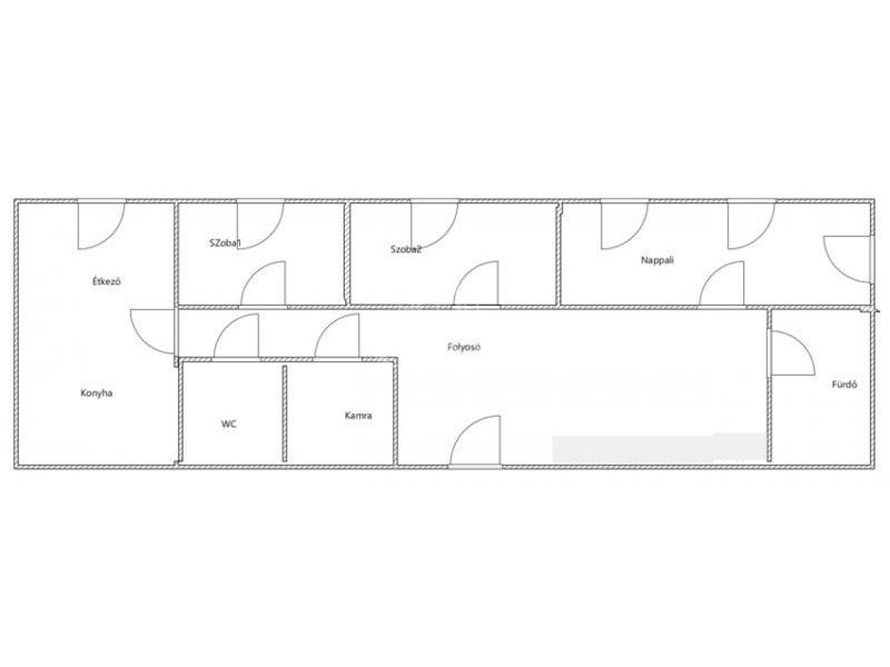 Helyiségek: 1 szoba + 2 félszoba + étkezős konyha + fürdő + külön WC +spájz
