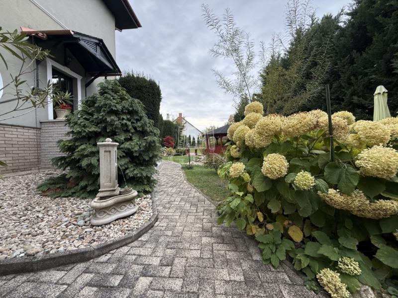 Azonnal költözhető, kertkapcsolatos lakás Öreghegy szívében –parkosított saját kerttel, garázzsal, saját utcai bejárattal! H-004650, Székesfehérvár közkedvelt Öreghegy szívében, a Millenniumi emlékmű közelében csendes és jól megközelíthető utcájában kínálunk eladásra, kimagasló műszaki tartalommal rendelkező, kétszintes családiház földszinti lakását. A ház kiváló elhelyezkedésének köszönhetően a történelmi belváros, illetve az M7 autópálya pár perc távolságra található, mindemellett az elkerülőút közelsége miatt a város többi része is könnyen megközelíthető. A ház 2006-ban épült, korszerű tégla falazattal, cseréptetővel, földszint + teljes értékű emelet kialakítással, saját telekkel garázsokkal valamint különböző extra kényelmi funkciókkal – wellness részleg – parkosított saját kerttel rendelkeznek. Az ingatlan területe 1421 m2, két utcafrontos, a ház a telek középen helyezkedik el, így mind az alsó mind a felső lakás saját, külön utcára nyíló bejárattal, saját 710m2 –es telekrésszel mérőórákkal rendelkezik. A korszerű, fűtési-hűtési rendszer , nyílászárók alumínium motoros redőnyökkel, szúnyoghálókkal, emelő-toló teraszajtóval felszereltek, az épület biztonságát riasztó és kamera rendszer garantálja. Az ingatlan gépészete elektromos felszerelése, -beleértve a kazánt is – telefonról vezérelhető. A ház összesen 338m2 hasznos alapterületű, elosztását tekintve: A földszinti 1 számú lakás 160m2 egy tágas, világos (45m2) nappali, étkezős konyha, 1 hálószoba, fürdőszoba, háztartási helyiség, valamint egy 36 négyzetméteres garázs található, ahonnan közvetlen bejárás nyílik a lakótérbe. A nappaliból közvetlen kijárat vezet a 16 m2-es teraszra, a szuterén részben kapott helyet egy pihenőszoba, ami jelenleg a 6 személyes szaunának ad helyet, valamint egy fürdő, wc, , pince a hozzá tartozó „ borozó”-val, valamint a garázs. A gyönyörűen parkosított kertbe egy kovácsoltvas kapun keresztül jutunk, ahol a garázson kívül több gépjármű parkolása biztosított, térkövezett beállókkal. A kert öntözőrendszerrel ellátott. Az ingatlan riasztó és kamera rendszerrel felszerelt. Az ingatlan lakhatáson kívül alkalmas, üzleti tevékenységre, pl: ügyvédi – tervező- vagy könyvelő iroda, szolgáltató tevékenységre, vagy akár lakásként bérbe is adható. Rugalmas eladó, kedvező fizetési feltételek! Eladási irányár: 159 900 000 .- Ft / földszinti lakás 710m2 telekkel Ugyanitt eladó az emeleti lakás is , saját garázzsal, telekrésszel, másik utcára nyíló kapuval bejárattal, az egész ház együttes megvásárlása esetén kedvezmény! Megtekintés előre egyeztetett időpontban lehetséges. Ha felkeltette érdeklődését, hívja irodánkat bizalommal, éljen ingyenes, személyre szabott hitelügyintézés szolgáltatásunkkal. Segítünk továbbá adásvételhez szükséges ügyvédi közreműködésben, energetikai tanúsítvány, valamint értékbecslés elkészítésében. For English information please send a message.