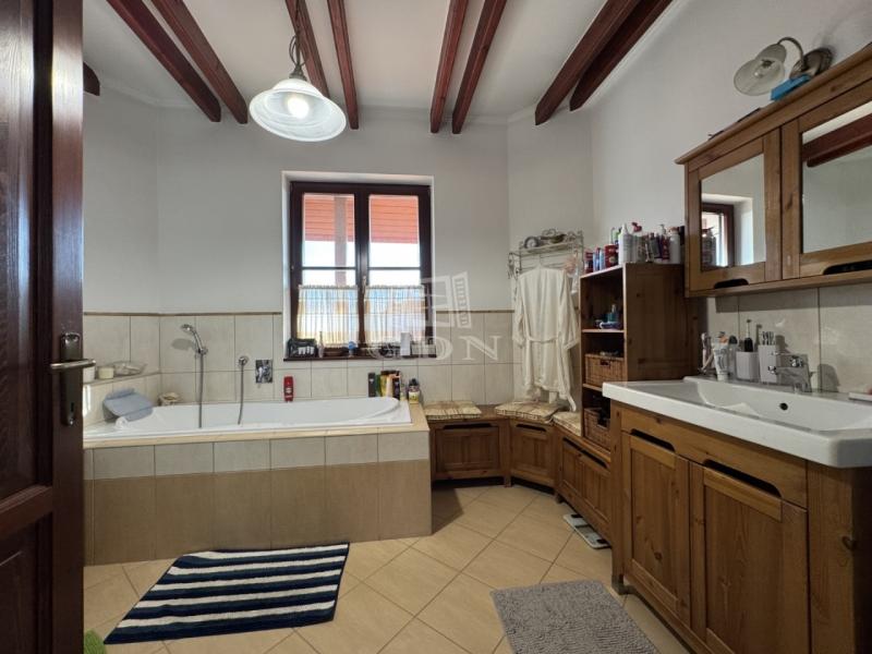 A hőszigetelt, 2 rétegű üvegezésű nyílászárók, a magas minőségű hideg- és melegburkolatok, a dizájnos falpanelek, valamint a tetőtéri látszógerendás a természetes eleganciát és tartósságot képviselik.