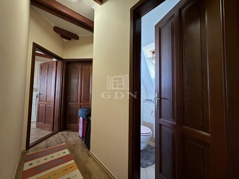 A tetőtérben 3 hálószoba, kettő gardrób és fürdőszoba, wc kapott helyet. A szinthez kapcsolódik egy fedett, 9 m²-es panorámás erkély, ahonnan lenyűgöző kilátás nyílik a városra.