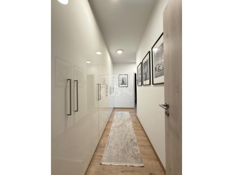 A lakás különlegessége a 52,46 m²-es, részben fedett terasz, amely tökéletesen alkalmas pihenésre, étkezésre vagy vendégek fogadására. A terasz további kényelmét elektromos napellenző biztosítja. Az ingatlan minden ablaka háromrétegű műanyag nyílászáróval és elektromos alumínium redőnyökkel felszerelt, a bejárati ajtó pedig több ponton záródó, prémium minőségű kivitel.