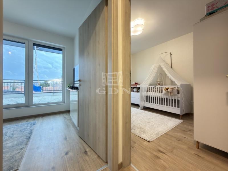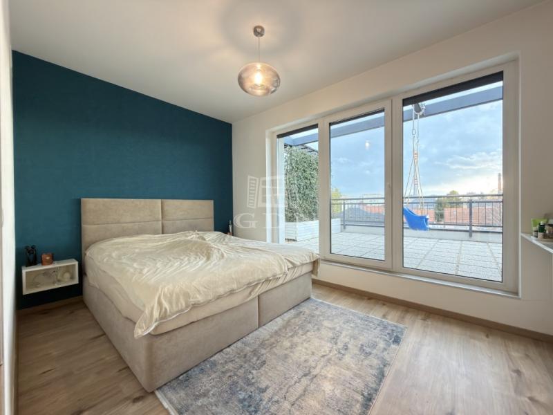 Eladó egy 2019-ben épült, exkluzív penthouse lakás egy csendes, családi házas övezetben található, akadálymentesített, 8 személyes lifttel rendelkező társasház 2. (legfelső) szintjén.