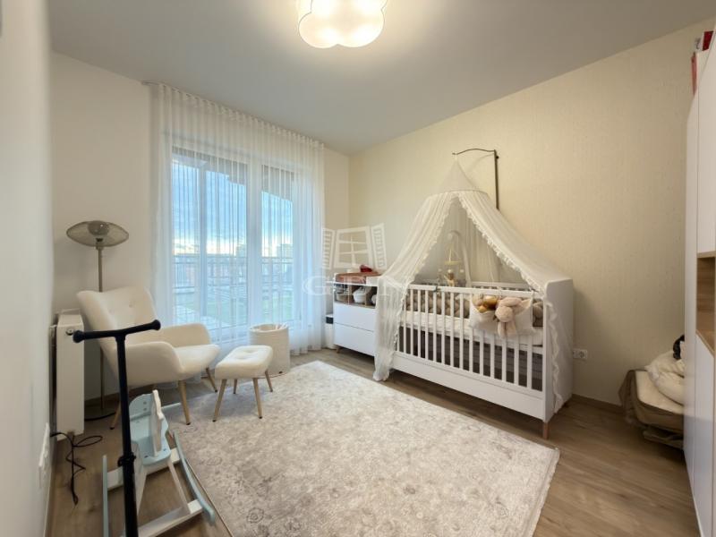 A 80,47 m²-es lakás amerikai konyhás nappaliból, valamint két különálló, szeparált szobából áll. A háztartási helyiségben külön WC kapott helyet, a fürdőszoba pedig káddal és további WC-vel felszerelt. A lakás nyugati és déli irányból is rendkívül világos, DNy-i tájolásának köszönhetően egész nap természetes fényben fürdik.