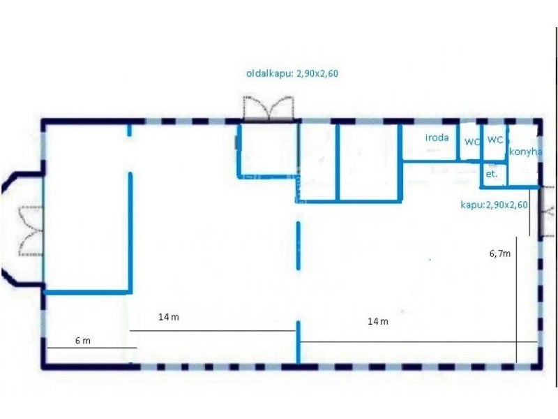 ‣ rakodásra alkalmas oldalsó ajtó méretei: 2,9m x 2,6m