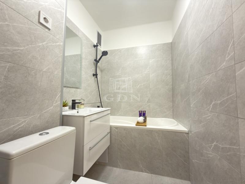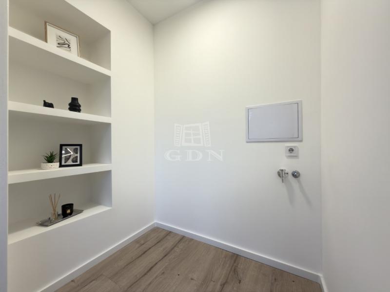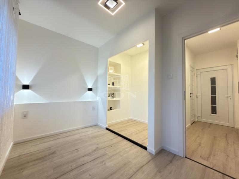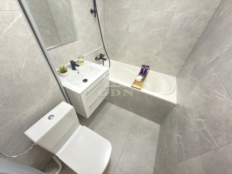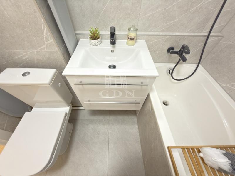 Az átalakítást követően, a konyha átkerült a nappaliba, így, 1 db külön nyíló szoba került kialakításra. A lakásban az összes burkolat cseréje megtörtént. A beltéri ajtók is újak, modern letisztultak. A fürdő is teljesen megújult, RAVAK kád került beépítésre.