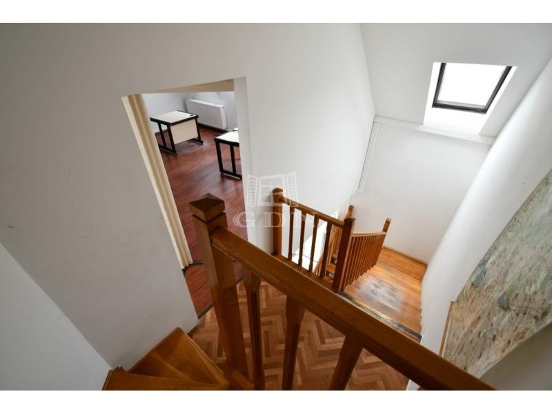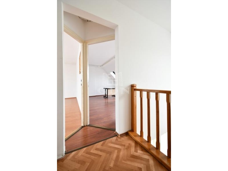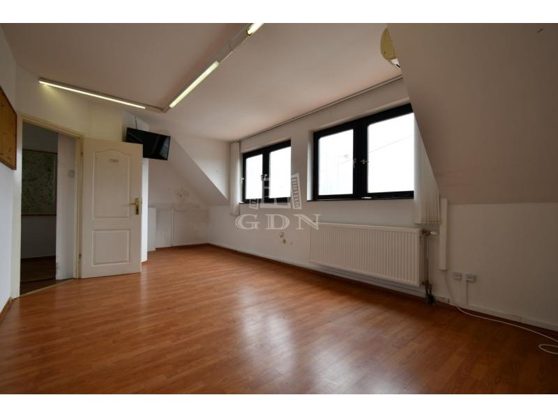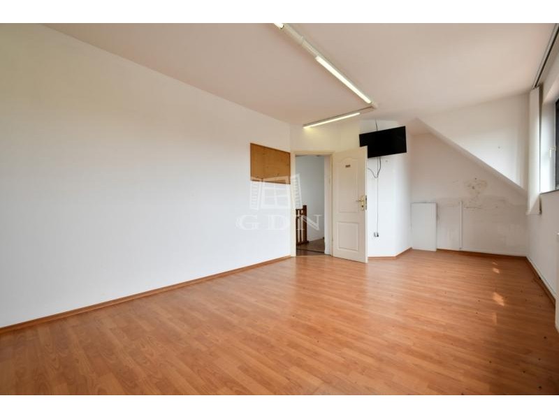 ‣ elosztását tekintve a földszinten egy iroda / üzlethelyiségből, teakonyhából, női/férfi wc-ből, és egy zuhanyzós mosdóból, a tetőtérben pedig 3db irodából és egy irattárból áll