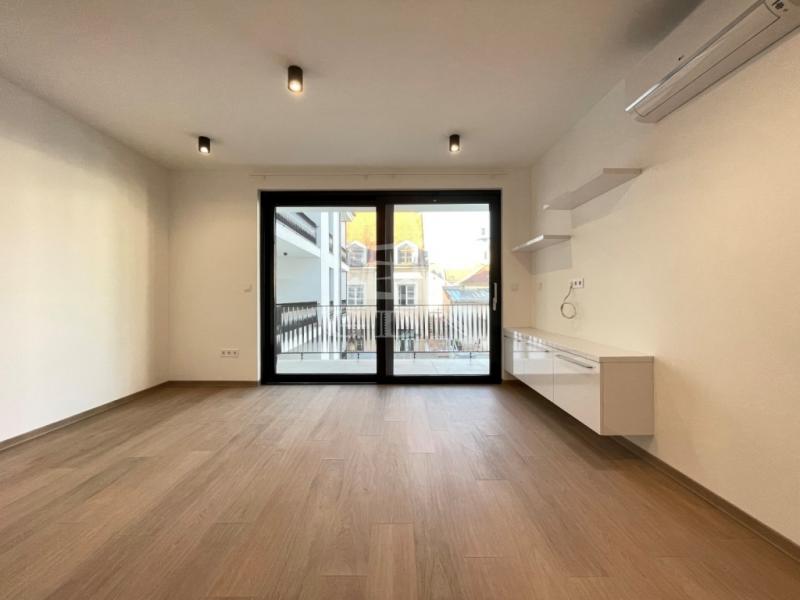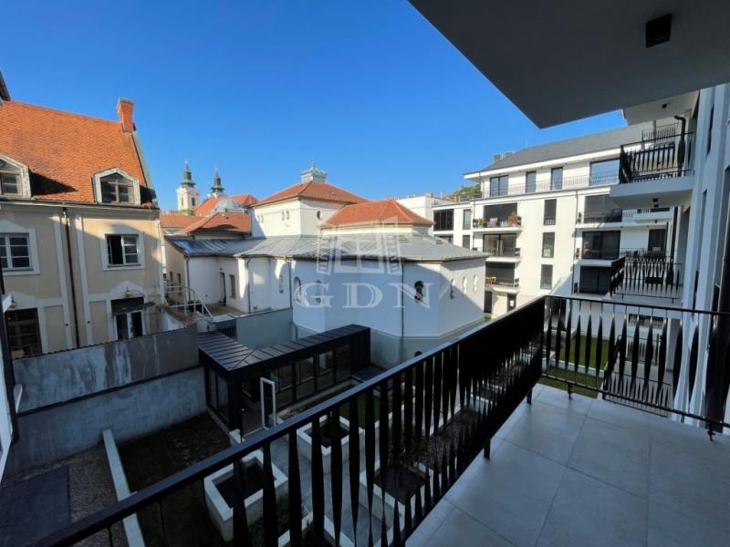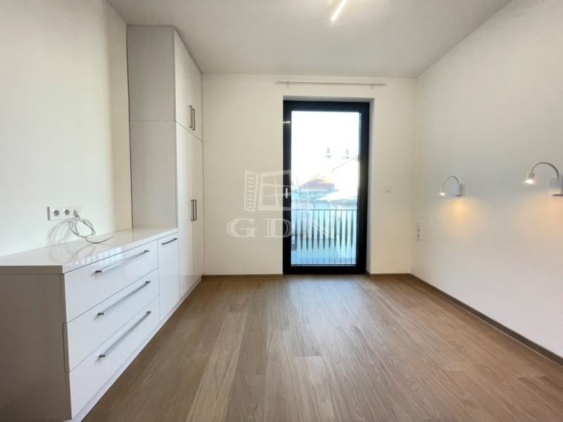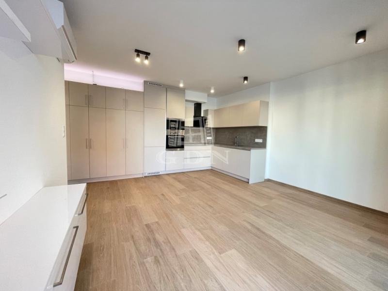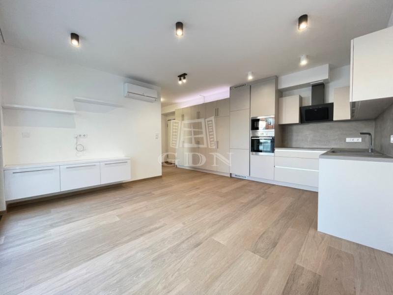 BL-003375. Belvárosban, modern akadálymentes, 2 lifttel ellátott társasházban 50 nm nagyságú, 6 nm-es erkéllyel rendelkező, amerikai konyhás nappali + 2 fél szoba elosztású lakás gépesítve, részben vagy egészben bútorozva (igény szerint), (jelenleg a képeken látható berendezési tárgyak találhatók meg), SMART HOME rendszerrel szerelve, valamint az épület alatt található teremgarázsban 1 autó számára biztosított beálló hellyel együtt hosszútávra kiadó.